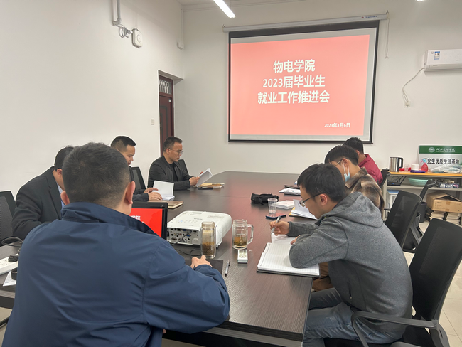 为更好地推进KY开元集团官网2023届毕业生就业工作,3月6日下午,KY开元集团官网在A503召开2023届毕业生就业工作推进会。会议由学院党总支副书记张玉龙主持,院长王绍明、党总支书记石义杰、副院长欧修龙、教研室主任余磊、团委书记刘鑫、辅导员李朦、范志鹏参加。
