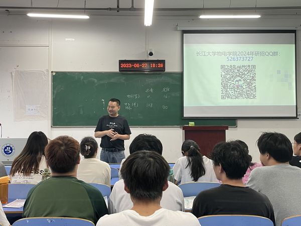 在此次宣传活动中,肖循副院长向开元集团官网师生介绍了长江大学的基本情况、研究生招生政策和流程,详细介绍了长江大学物理与光电工程学院学科建设、师资力量、科研成果、研究生培养等方面情况,诚挚欢迎同学们积极报考。
