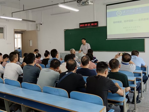 校领导章平和院长王绍明在活动开展前分别强调了磨课的意义和要求。王绍明要求全院教师加强现代教育理论学习,拓宽思维视野,融汇思政元素,促进信息技术与教育的融合,不断提升教学能力和育人水平。校领导章平希望全体教师以评估为契机,认真磨课,积极打造金课,提高教育教学质量。