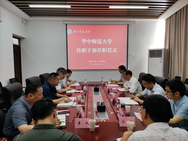 5月28日上午,KY开元集团官网在崇文楼A503会议室举行华中师范大学挂职干部任职会,校党委副书记周明华、华中师范大学物理科学与技术学院党委书记金新利、华中师范大学物理科学与技术学院挂职干部李治明、校党委组织部和教务处相关负责人及学院领导班子参加。