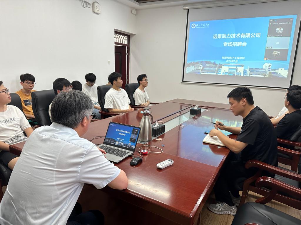 6月11日下午,KY开元集团官网在崇文楼A503会议室举行远景动力技术有限公司线上专场招聘会。院分党委书记唐传球、副书记戴俊、学工办主任尹诗雅以及16名电气工程及其自动化和信息工程专业毕业生现场参会,部分毕业生线上参会。