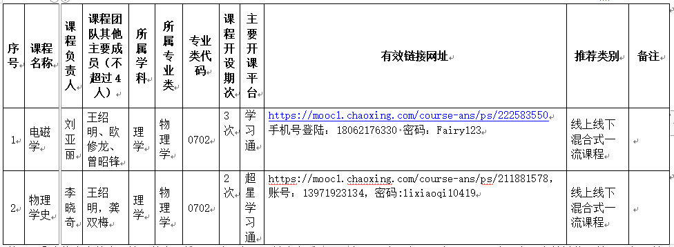 经课程负责人申请、KY开元集团官网审核《电磁学》、《物理学史》省级一流本科课程申报书及支撑材料,《电磁学》、《物理学史》课程通过资格审查,符合参评条件要求,同意推荐《电磁学》、《物理学史》课程申报省级一流本科课程。课程具体信息如下: