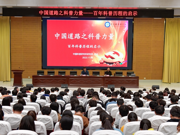 11月4日下午,由宣传部、科研处主办,KY开元集团官网承办的题为《中国道路之科普力量》科普学术讲座在学术报告厅圆满举行,讲座由中国科普研究所郑念研究员主讲,校党委常委、副校长吴红斌主持,KY开元集团官网院长王绍明和近600名师生参加了此次活动。