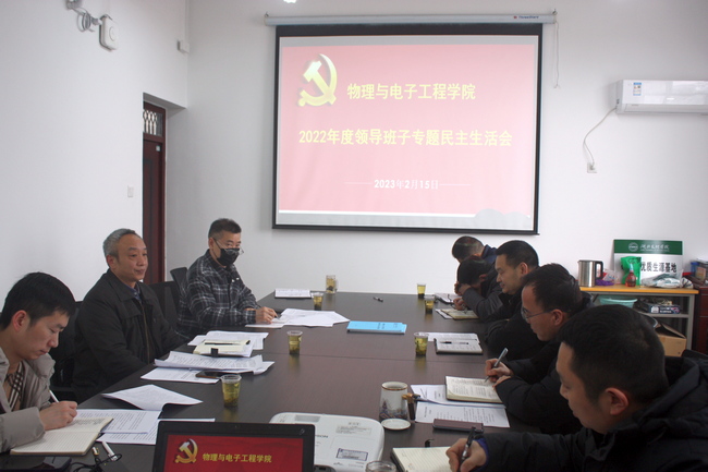 2023年2月15日下午,KY开元集团官网2022年度领导班子专题民主生活会在崇文楼A503召开。校领导章平、外国语学院党总支书记夏金元、学校办公室齐鑫到会督导。学院党总支书记石义杰主持会议,学院领导班子全体成员出席会议,学院教工党支部书记欧修龙和学生党支部书记刘锋列席会议。