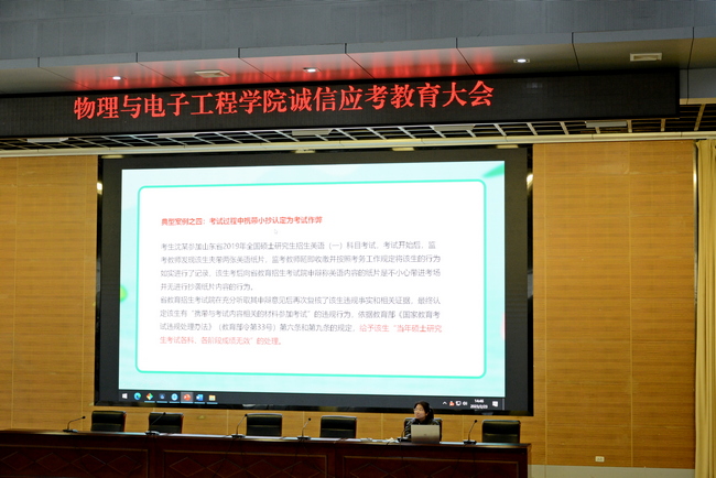 会议分别从“什么是诚信”、“诚信考试的重要性”“考试作弊的危害”、“应试技巧”这四个板块展开。辅导员老师李朦通过讲解相关违纪案例,让同学们引以为戒,切勿抱有侥幸心理。还向大家解读了《KY开元集团官网考试违规认定与处理办法》和考试的其他注意事项,指出诚信的重要性,号召同学们做到诚信应考。同时李老师还对同学们进行了考前心理辅导,向大家介绍了考前缓解压力的小技巧,并预祝大家取得好成绩。