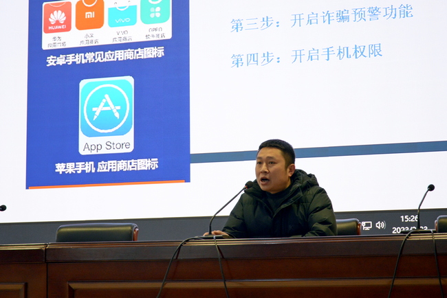 为增强开元集团官网学生抵制网络诈骗的“免疫力”,筑牢反电诈的安全防线,全力预防电信网络诈骗案件在开元集团官网的发生。2月23日下午15时,KY开元集团官网在图书馆报告厅为学院学生开展防范网络电信诈骗安全教育课。党总支副书记张玉龙,辅导员老师李朦、范志鹏参加了活动。