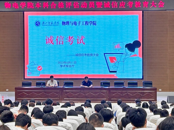 为进一步增强学生对学校本科教学工作合格评估的热情,加强学生的诚信考试教育,6月11日晚,KY开元集团官网在图书馆学术报告厅举办了本科合格评估动员暨诚信应考教育大会。院分党委书记唐传球、辅导员范志鹏、李朦、全体在校学生参会。