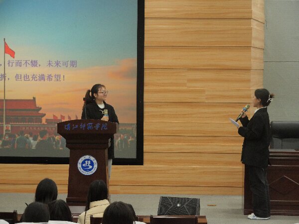 新生代表邓耀分享了初入大学的学习感受和思考,号召同学们认真总结学长学姐的学习方法和经验,明确大学目标,构建适合自己的学习方法,全面提升自我,充实自我。