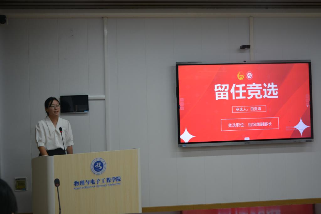 院分团委负责人李朦作总结讲话,她对即将离任学生干部的付出和努力表示肯定和感谢,希望新当选的学生干部继续传承学院分团委良好的工作作风,努力为学院的发展贡献自己的力量。