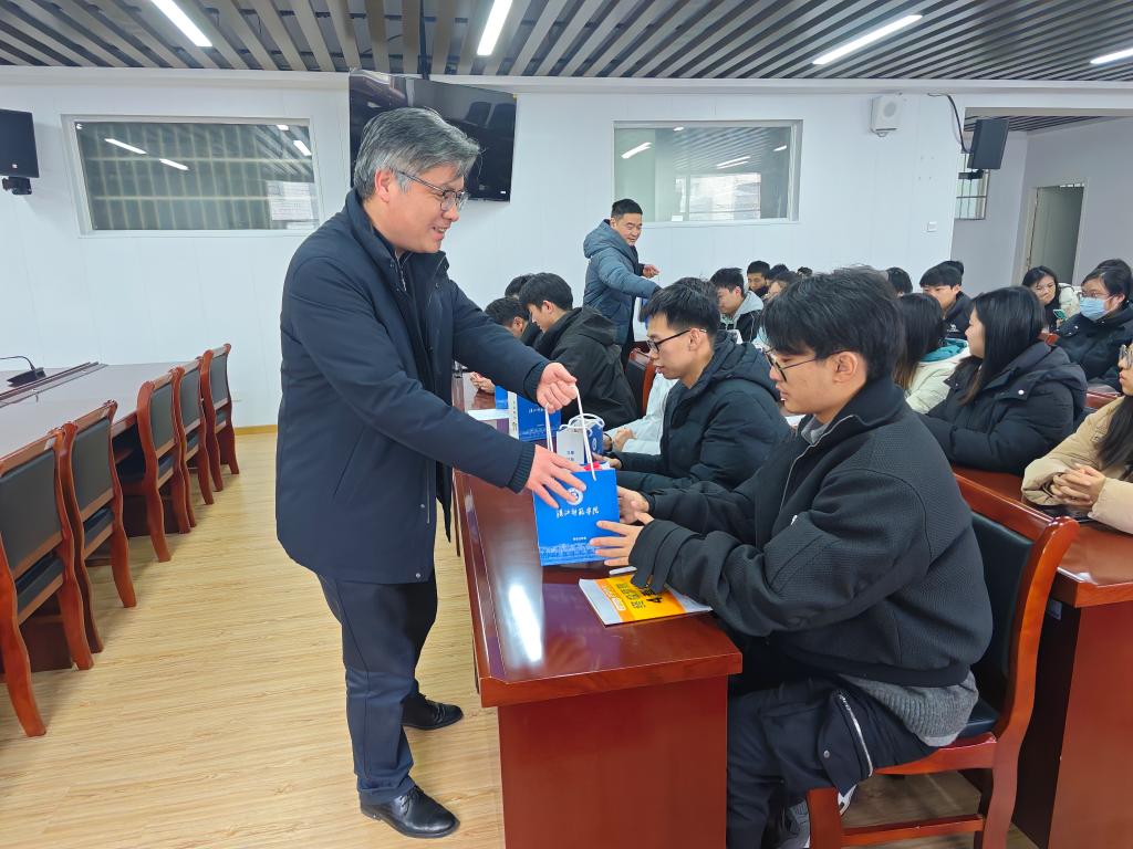 随后,老师们给在场同学赠送了精心准备且满载温情的考研助力包,预祝每位同学都能取得优异成绩,一战成“硕”。