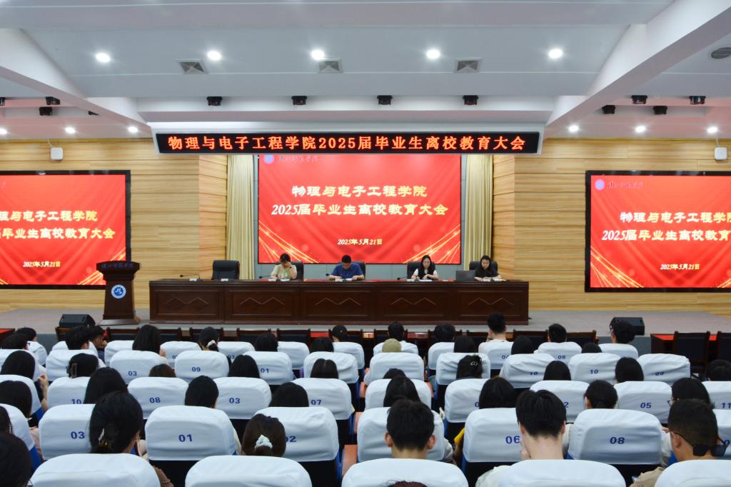 为做好毕业生教育、管理和服务工作,确保毕业生文明、安全、和谐、有序离校,5月21日上午,KY开元集团官网在崇文楼C101会议室召开2025届毕业生离校教育大会。院分党委副书记戴俊、学工办主任尹诗雅、辅导员田梦谣和2025届全体毕业生参加会议,会议由辅导员贺培主持。
