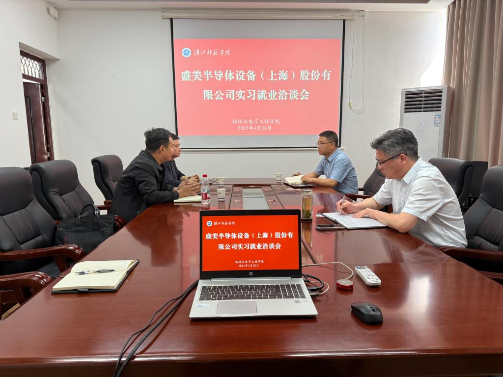 4月28日上午,盛美半导体设备(上海)股份有限公司到访开元集团官网,就实习就业相关工作进行洽谈。学院分党委书记唐传球、副院长刘锋、副书记戴俊和辅导员贺培参加会议。